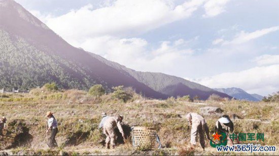 露珠打湿迷彩裤,战士们轻举妄动,张天德手把手教年青战友分秧插秧。阿嘎次姆撑动手杖坐在田埂上,看着艰苦的身影泪光耀眼,频频递上酥油茶。